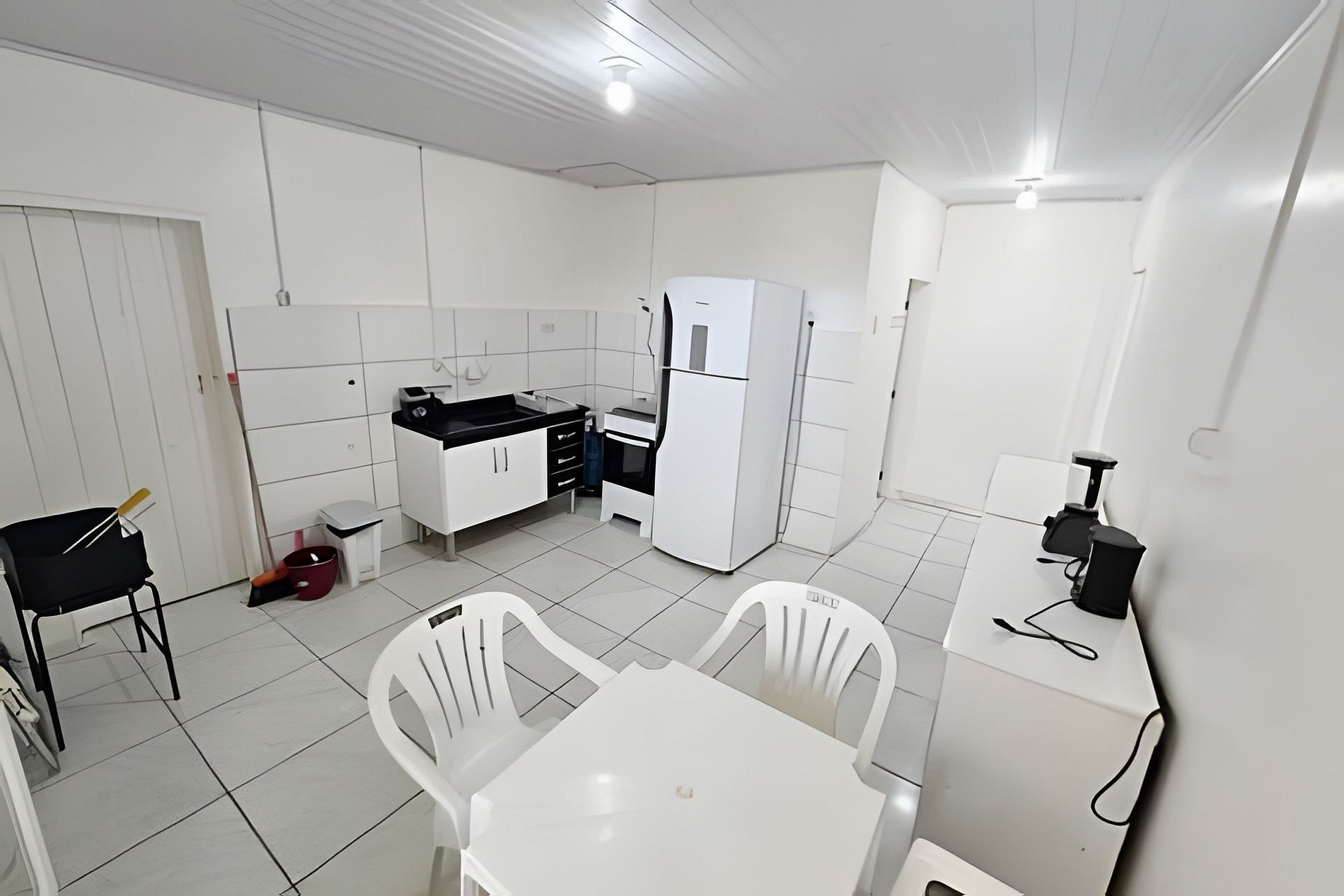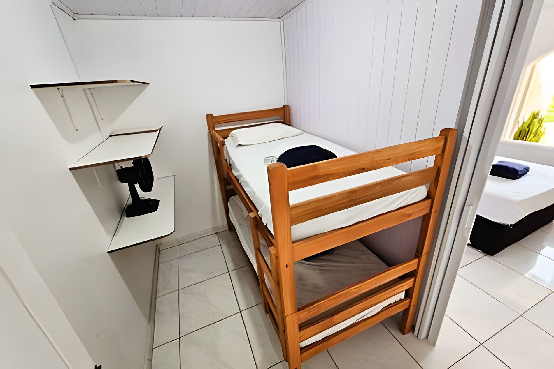 A casa tem 50m² fica nos fundos (acesso com pequenos degraus de escada). O espaço é composto por 02 quartos, cozinha, banheiro privativo, lavanderia tanque e varal. Possui 01 cama casal, 2 camas de solteiro (beliche), ventilador, TV e Wi-Fi gratuito