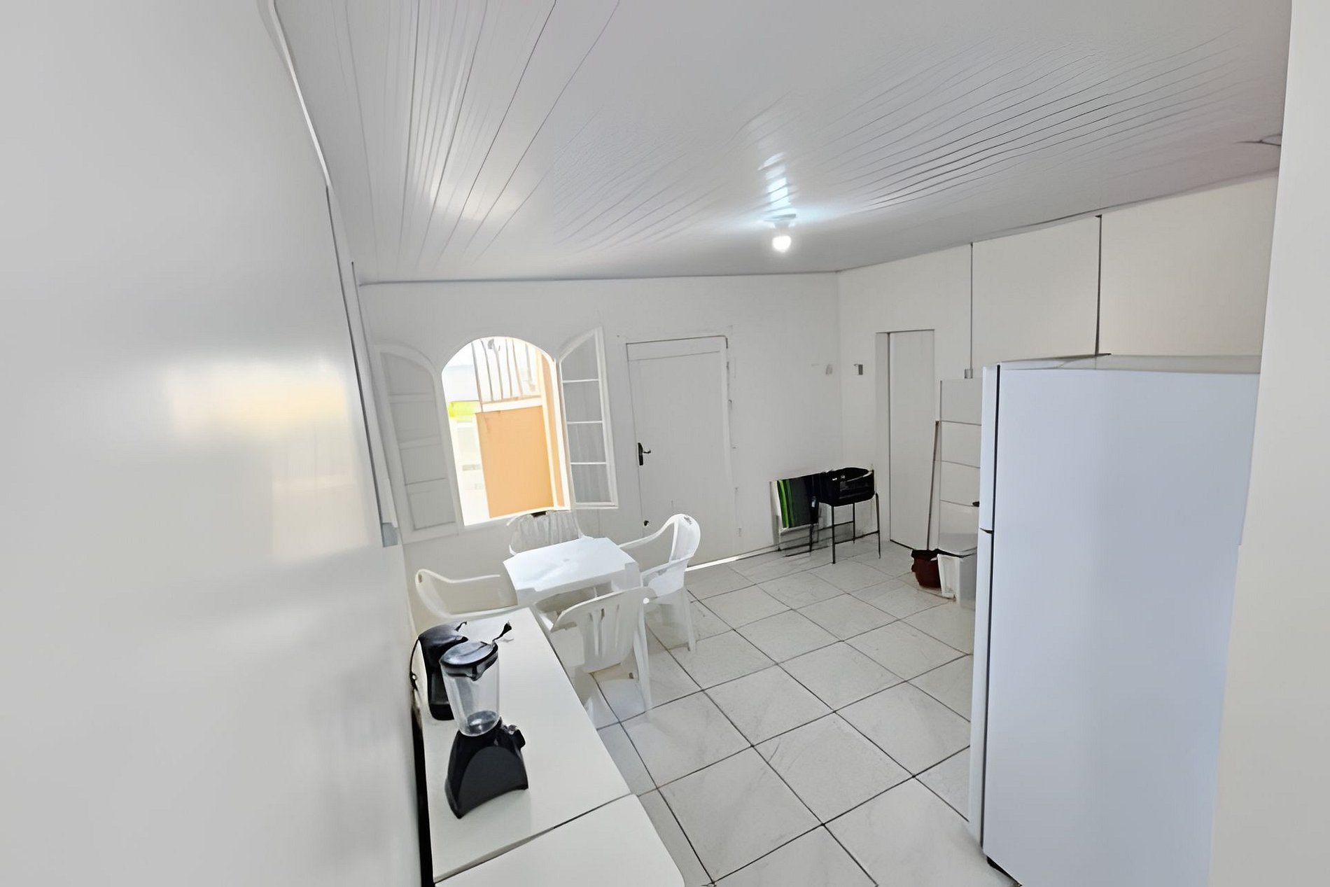 A casa tem 50m² fica nos fundos (acesso com pequenos degraus de escada). O espaço é composto por 02 quartos, cozinha, banheiro privativo, lavanderia tanque e varal. Possui 01 cama casal, 2 camas de solteiro (beliche), ventilador, TV e Wi-Fi gratuito
